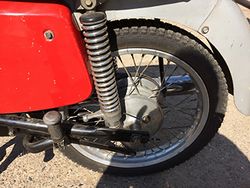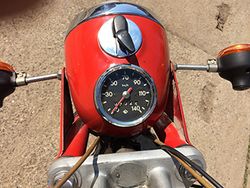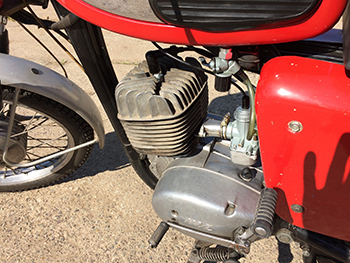 Der hoffnungslos verharzte Vergaser hatte gefühlte Wochen im Ultraschallbad verbracht - um dann doch ausgetauscht zu werden. Eine originale Isolator-Kerze aus altem Lagerbestand wurde montiert. Zündspule und Kondensator waren nach alter Kunst geprüft worden. Die neuen, „alten" Kontakte hatten 0,6-er Abstand. Der Zündzeitpunkt "3 mm vor OT" stimmte hinlänglich. Der, aus einer alten Isolatorkerze abenteuerlich gebaute Kolbenfinger mit Skala, hatte das bestätigt. Die Kompression war gefühlt gut. Viele Details waren gewissenhaft instand gesetzt worden. Das Lenkradschloß und das Schloß vom Werkzeugfach waren erneuert worden. Der große Gummidichtring des Deckels auch. Das Kickstarter-Gummi war ebenso neu und mit etwas Siliconöl aufgeschoben worden. Ein Fehler, wie sich noch zeigen sollte. Nun kam es darauf an. Eine Flasche Rotkäppchen-Sekt stand zur Feier des Erfolgs etwas abseits. Also los: Schlüssel rum. Die neue Batterie ließ die Kontroll-Leuchten im Tacho rot/grün strahlen. Benzinhahn