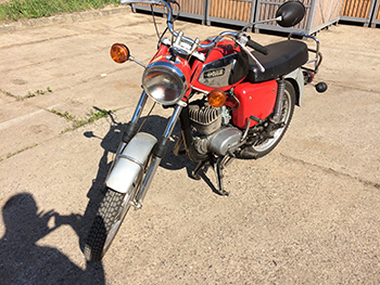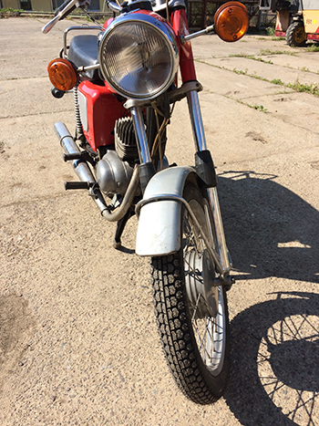 Der nächste freie Tag gehörte der Bestandaufnahme. Längst war in Büchern und Foren recherchiert worden, um welchen Typ es sich nun genau handeln könnte. Antworten auf Fragen wurden gesucht. Wieso sitzt der Tacho in der Lampe und nicht neben einem Drehzahlmesser? Warum gibt es keine Alubrille mit Gummitöpfen? Heißt „Deluxe" wirklich nur, dass ein höherer Lenker montiert wurde? Hat sie den Motor "M1, M2, oder M3"? Es ist wohl doch eher der M1. Fehlende Teile mußten besorgt werden. Der Ersatz für das fehlenden Vorderrad kam aus dem Keller des Nachbarn. Die Freude war kurz, denn dessen Bremstrommel hatte einen Durchmesser vom 150 mm. Die Rote brauchte vorn 160 mm und deren Tachotrieb war auch anders. Also wurde der Ersatz im weltweiten Netz gesucht. So ging das immer weiter. Es gab wirklich viel zu lernen. Während, beispielsweise bei den Japanern aus der Jugendzeit, die Sitzbank einfach ausgeklinkt wurde, mußten bei der MZ etliche Schrauben gelöst werden. Zwei davon waren nur bei ausgebautem Hinterrad erreichbar. „Erst wenn man die Dinge tief sieht, werden sie einfach.", erinnerte sich der Westschrauber an weise Worte seines Lehrmeisters. Bisher waren dem unbedarften Westfalen die verschiedenen MZ-Motorräder eher verwechselbar erschienen. Plötzlich nahm er immer mehr Detailunterschiede wahr. Es gelang ihm immer besser, die einzelnen Typen im Vorbeifahren zu bestimmen. Beim Autofahren hatte er sich schon ertappt, wie er grüßend die Hand gehoben hatte. Leichter wurde es dadurch allerdings nicht. Irgendwann war der Tag gekommen. Alles war geputzt worden und ein halber Eimer des abgekratzten, wertvollen Bodens der Magdeburger Börde, mit 99 von 100 Bodenpunkten, lag unter der Maschine. Vieles war überholt worden und der Motor sollte erweckt werden. Alle Vorbereitungen waren penibel getroffen. Der Tank war im Inneren mit vielen Tricks und etwas Chemie entrostet worden.
